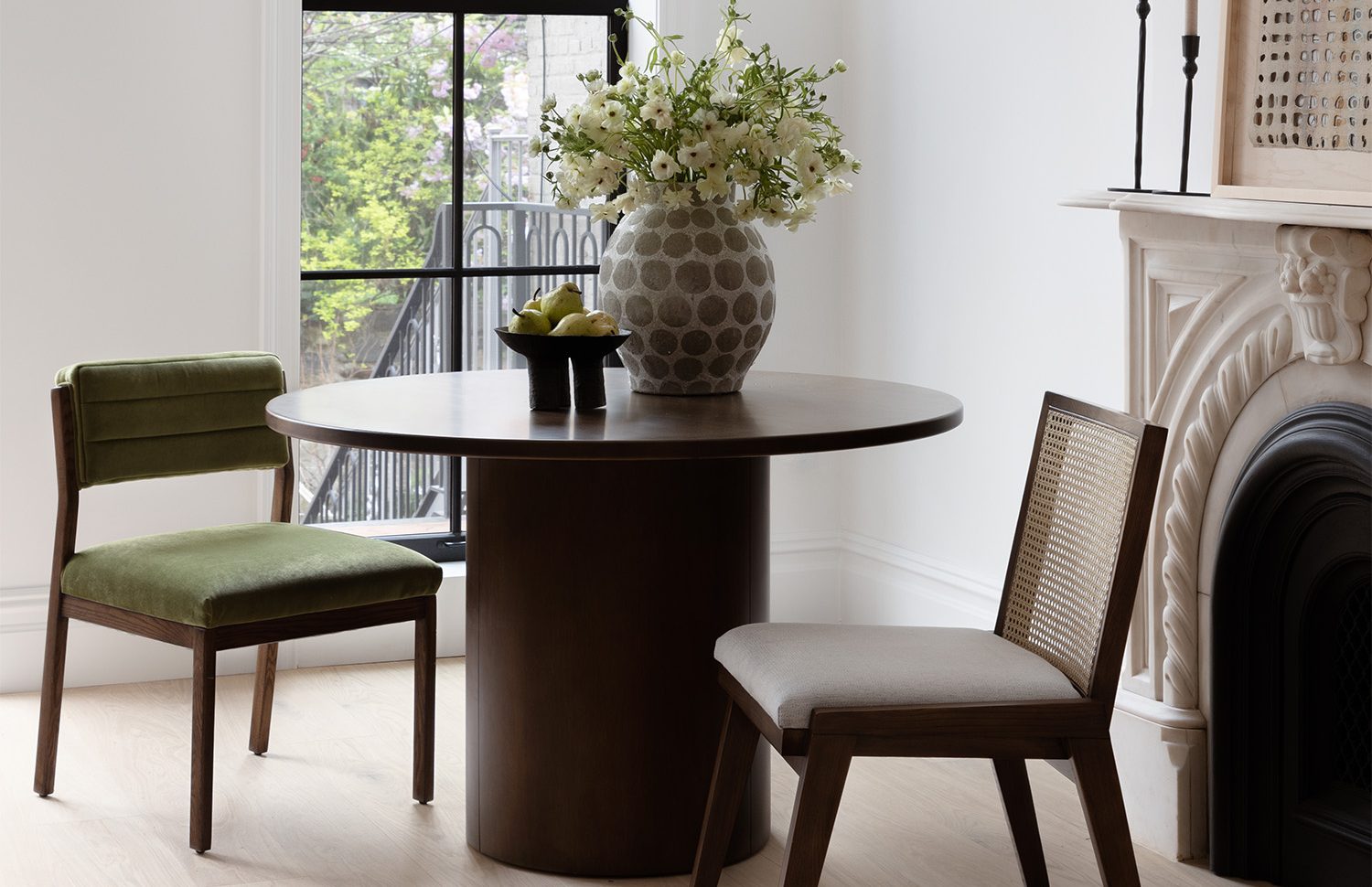 Việc kết hợp các tông màu gỗ một cách dễ dàng đòi hỏi một chút bí quyết thiết kế (đó là lý do tại sao chúng tôi viết bài này) và điều đó bắt đầu bằng việc tạo nền tảng cho không gian của bạn bằng tông màu gỗ cơ bản. Có sàn gỗ không? Vậy thì thật dễ dàng – đó là giọng điệu chủ đạo của bạn. Nếu không, hãy tìm đến món đồ gỗ nổi bật nhất trong không gian của bạn để dẫn đầu, cho dù đó là tủ búp phê, bàn ăn hay tủ sách. Điều quan trọng là các tông màu gỗ khác mà bạn giới thiệu sẽ bổ sung cho nhân vật chính. Ví dụ: nếu bạn có sàn gỗ sồi sáng màu, hãy chọn những tông màu ấm tương tự (như cát và gỗ óc chó) thay vì sử dụng gỗ lũa bụi bặm.